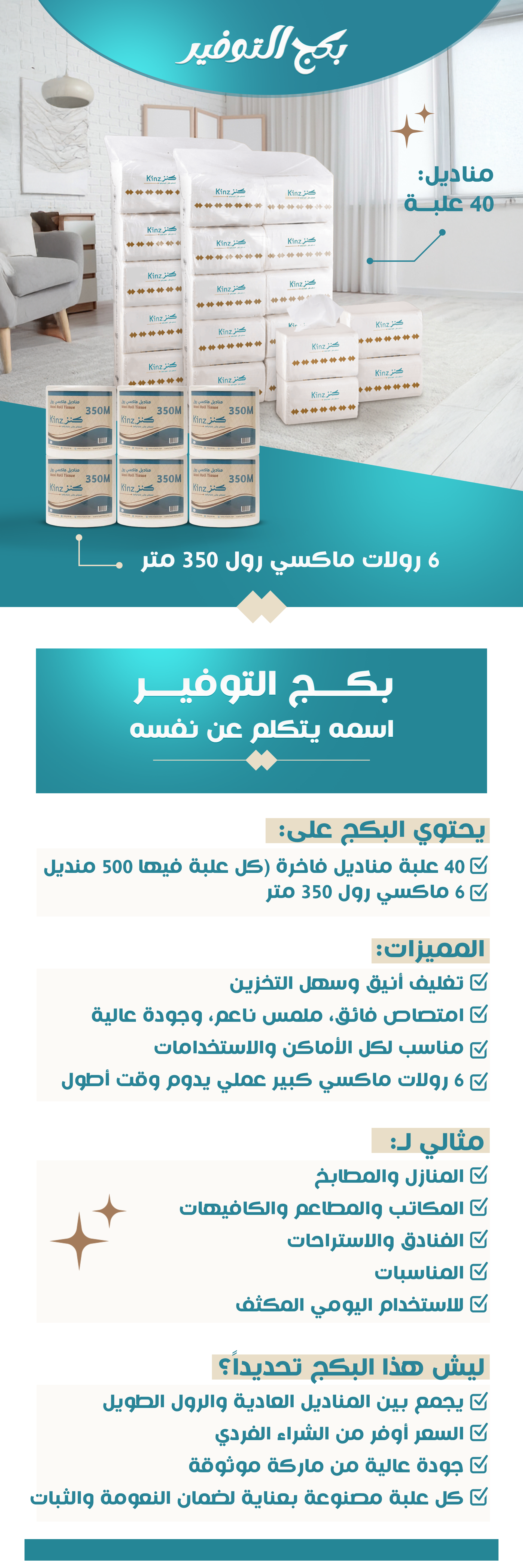 بكج التوفير ( مناديل ٤٠ علبة+ ماكسي رول٣٥٠ متر )